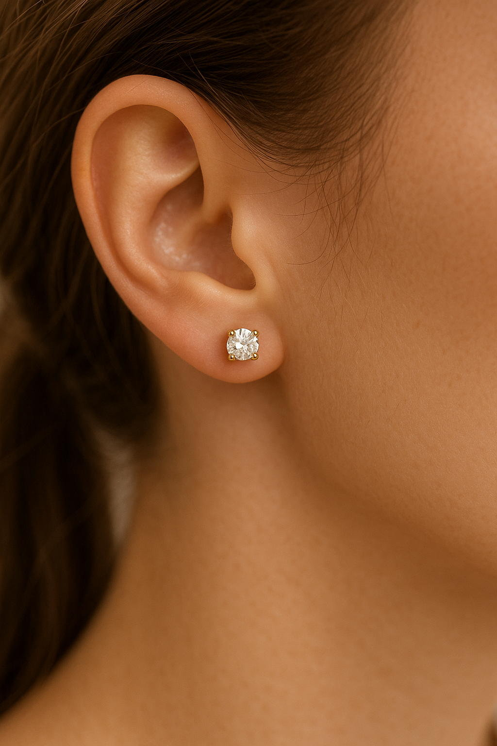 These classic solitaire studs feature 0.5 carat lab grown diamonds in each ear, for a total weight of 1.00 carat. Perfectly proportioned for everyday luxury, the diamonds are set in a timeless 4-prong basket setting crafted from solid 14k gold.